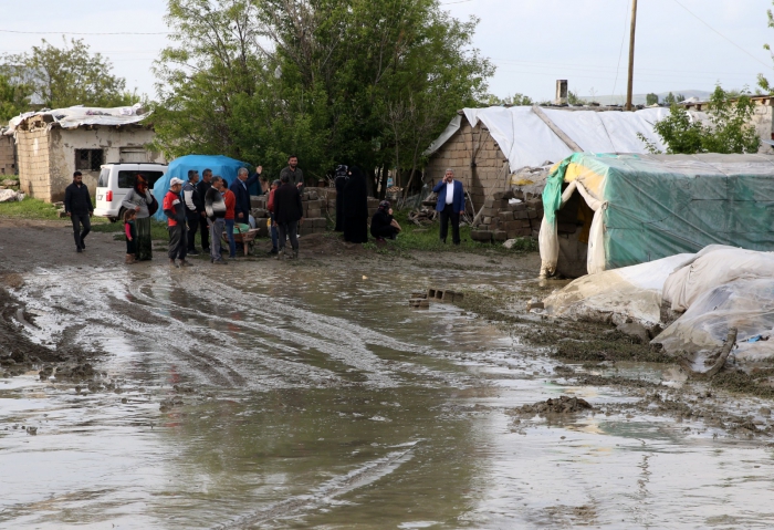 Evinde ve aracında hasar oluşan Habip Demir ise yağıştan dolayı köyden geçen derenin taştığını belirterek, "Evler su altında kaldı. Çamur ve balçıklar oluştu. Çok şükür bir can kaybı olmadı ama mala zarar geldi. Kapının önündeydik bir anda sel gelince yapacak bir şey yoktu. Sadece izledik." dedi.
