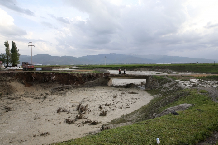 Kentte öğleden sonra etkili olan sağanak nedeniyle merkeze 20 kilometre uzaklıktaki Çukurbağ köyünün içinden geçen Yazla Deresi taştı.