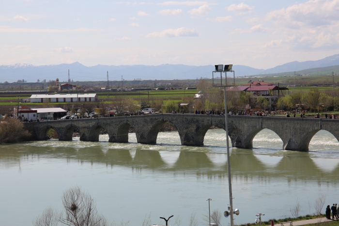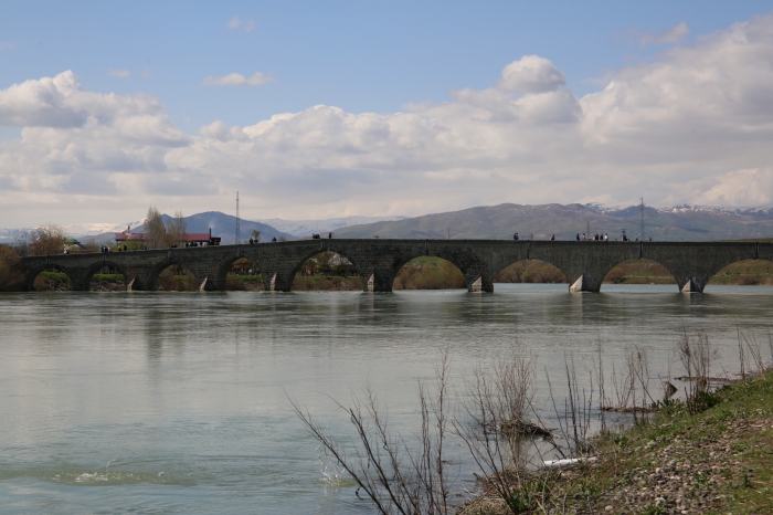 ALPARSLAN DİYARI- Murat Nehri üzerinde 13'üncü yüzyılda inşa edilen 188 metre uzunluğunda ve 5 metre genişliğindeki 12 gözlü köprü, kenti ziyaret edenlerin gezdiği tarihi mekanların başında geliyor.