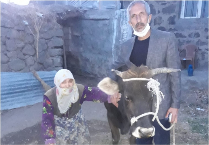 Malazgirt’te yaşayan 80 yaşındaki Necla Ata, hayırseverlerin Danişment Gazi mahallesinde yaptırdıkları cami inşaatı için ineğini bağışlayarak destek verdi.