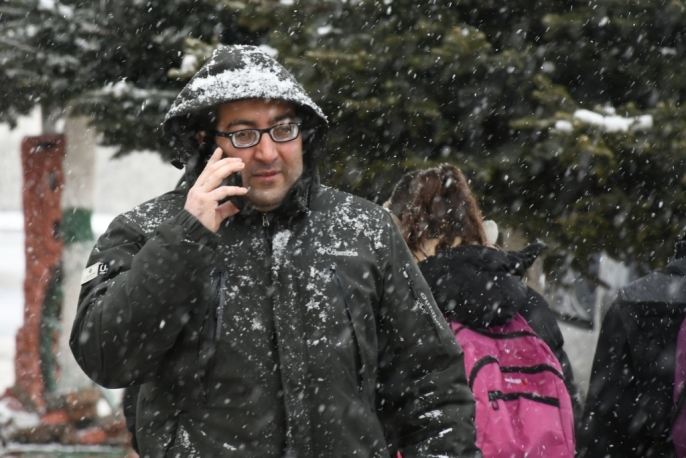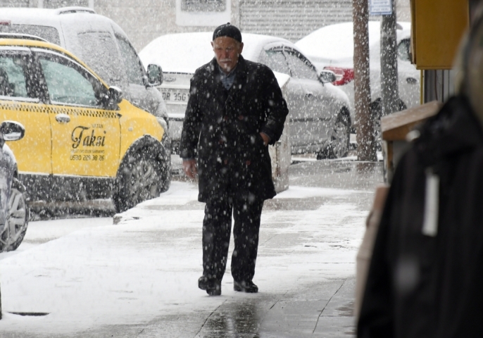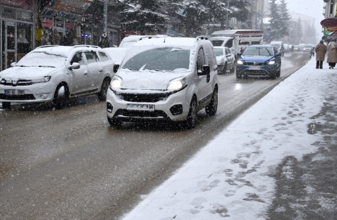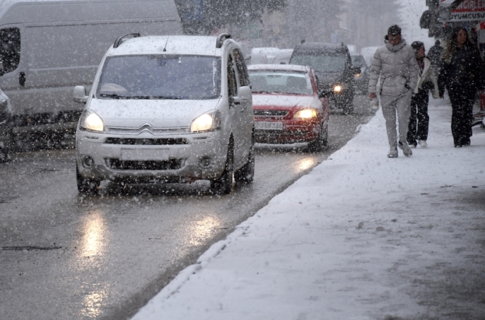 İlçede etkili olan kar yağışı nedeniyle çevredeki her yer bembeyaz oldu. Vatandaşlar, araçlarının üzerindeki karı temizlerken, sürücüler de yoğun yağış nedeniyle ilerlemekte zorlandı.