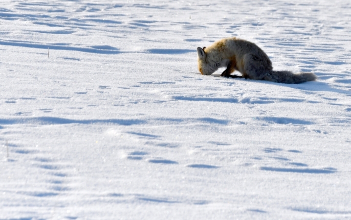 İlçe kırsalında kar kalınlığının yer yer 2 metreyi bulduğu bölgelerde, yaban hayvanları beslenme konusunda büyük güçlük yaşıyor. Bu zorlu koşullar altında, özellikle kızıl tilkilerin yiyecek arayışı dikkat çekiyor.