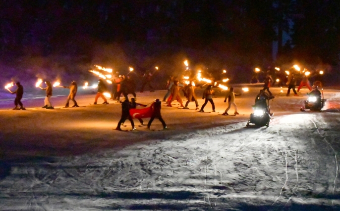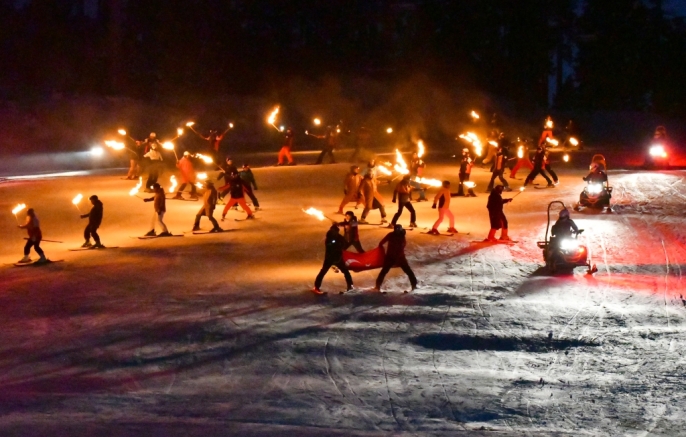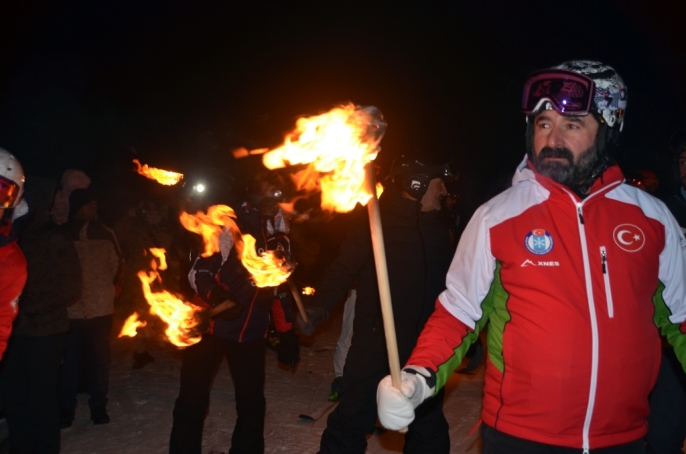 Sarıkamış'ta kış coşkusu: Meşaleli kayak gösterisiyle sezon açıldı