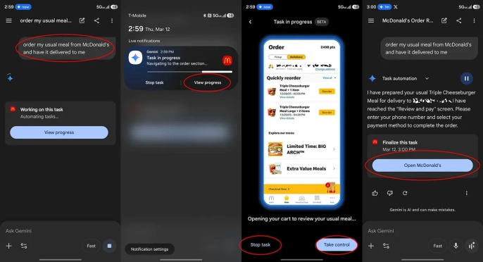 Sistemin kullanımı oldukça basit ve pratik. Örneğin, "Bana havalimanına gitmek için bir araç çağır" veya "Kahve ve kruvasan sipariş et" gibi komutlarla Gemini, ilgili uygulamalara sizin yerinize girerek süreci tamamlıyor. Yapay zeka, tıpkı sizin gibi uygulamayı açıyor, gerekli ekranları geçiyor ve hatta ekstra adımları atlayarak sizin için en doğru seçenekleri işaretliyor. Çok adımlı karmaşık istekleri bile kolayca yerine getiren bu sistem, kullanıcılara büyük bir zaman tasarrufu sağlıyor.