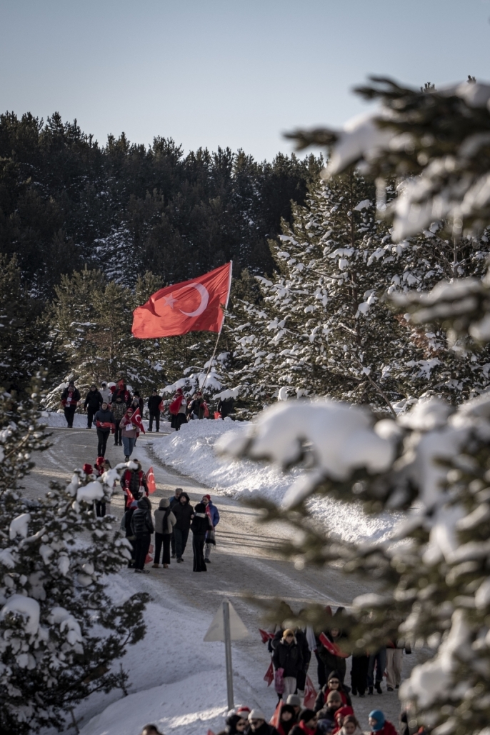 Etkinliğe 16 yıldır katıldığını belirten Rizeli Ramazan Çepni, kısa kollu tişörtüyle dev Türk bayrağı taşıyarak dedelerinin şehit olduğu topraklarda bulunmanın farklı duygularını yaşadığını dile getirdi. Çepni, "Şu an güneş var, onlar tipi altında şehit oldular. Her zaman o duygularla geliyorum." diyerek duygularını ifade etti. Yaklaşık 15 yıldır etkinliğe katılan ve iki dedesini Sarıkamış'ta şehit vermiş eski bir komando olan Osman Köseoğlu ise, "Burada şehit olanlar geri dönmeyi düşünmediler. Vatanımız için birlik ve beraberliğimizi muhafaza ederek Büyük Türkiye için çalışmalıyız." şeklinde konuştu. Ellerinde Türk bayrakları ile binlerce kişi, Kur'an-ı Kerim tilaveti, tekbir ve salavatlar eşliğinde şehitler için dua etti. Ardından, Ay-Yıldızlı Tören Alanı'na doğru 4,5 kilometrelik bir yürüyüşe geçildi. Bu yürüyüşün sonunda, şehitlikte Kur'an-ı Kerim tilaveti ve dualarla anma programı tamamlanacak.
