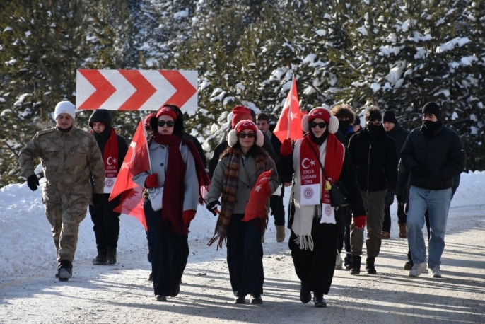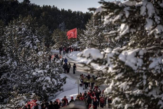 Kars'ın Sarıkamış ilçesinde, Soğanlı ile Allahuekber Dağları arasındaki Kızılçubuk Zirvesi'nde toplanan katılımcılar, Türk bayraklarıyla yürüyerek anma alanına ulaştı. Sabahın erken saatlerinde başlayan bu anlamlı buluşmaya, birçok farklı ilden ve yurt dışından gelen vatandaşlar eşlik etti. Hava sıcaklığının sıfırın altında 17 dereceye kadar düşmesine rağmen, vatan uğruna can veren şehitleri anmak için gösterilen bu coşku görülmeye değerdi. Katılımcılar, Kızılçubuk bölgesinde şehitler anısına yapılan kardan heykellerin önünde hatıra fotoğrafları çektirmeyi de ihmal etmedi.