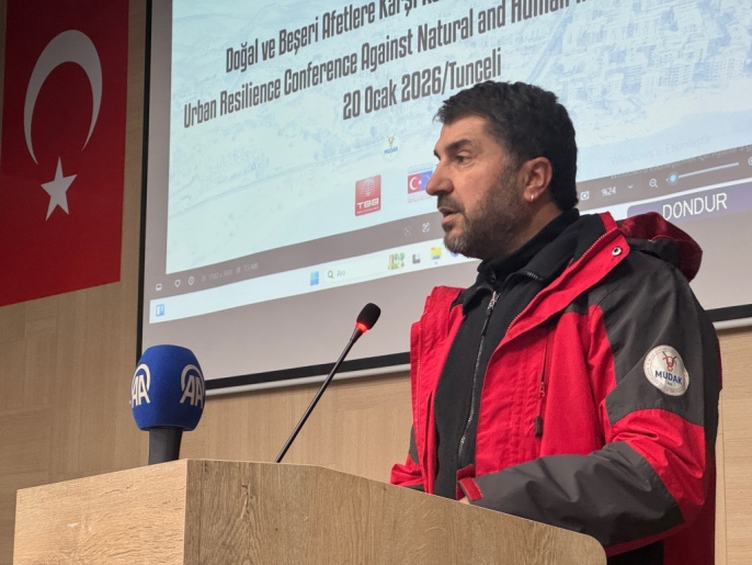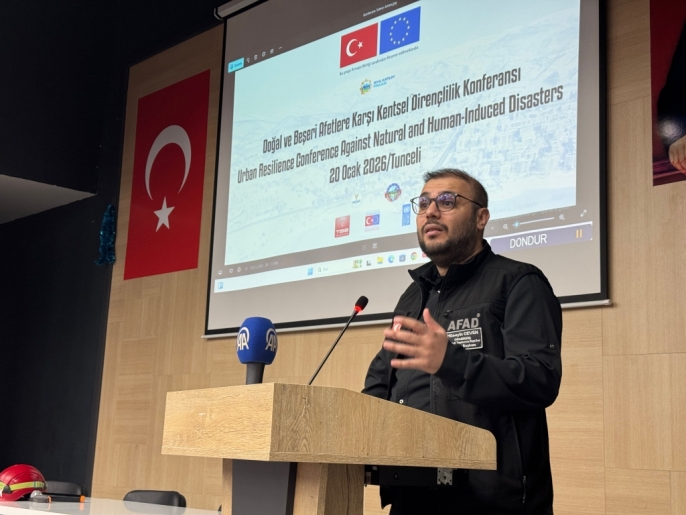 Tunceli'de, doğal ve beşeri afetlere karşı kentsel dirençliliği artırmak amacıyla bir konferans düzenlendi. Valilik, belediye, Munzur Üniversitesi, İl Milli Eğitim Müdürlüğü, AFAD ve Munzur Arama Kurtarma Derneği (MUDAK) işbirliğiyle Hüseyin Güntaş Konferans Salonu'nda gerçekleştirilen etkinlikte, afet farkındalığı oluşturulması ve vatandaşların bilinçlendirilmesi hedeflendi.