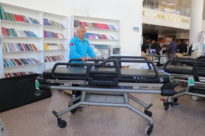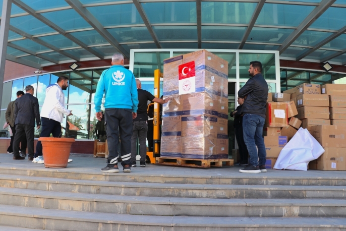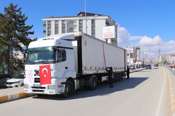 Van İl Sağlık Müdürlüğü'nde titizlikle kolilenen ve tırlara yüklenen yardım malzemeleri arasında ilaç, serum, sarf malzemeleri, tıbbi cihazlar, sedyeler ve oksijen tüpleri bulunuyor. Bu malzemeler, Türkiye'nin farklı sağlık kuruluşlarından toplandı.