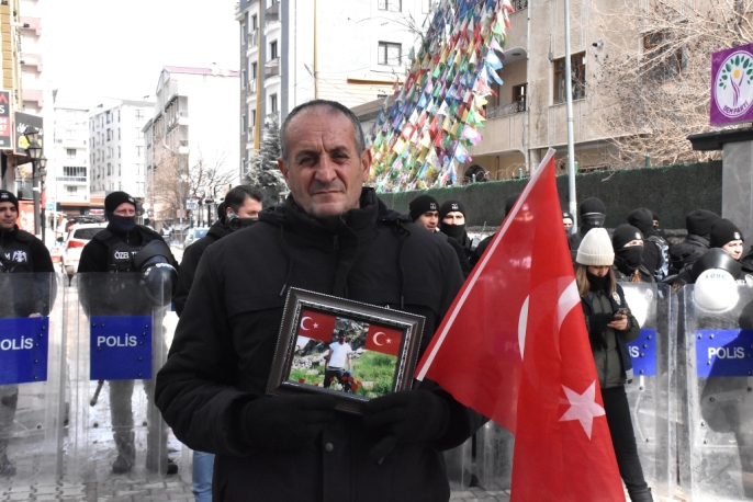 Menekşe Sokak'ta bir araya gelen aileler, Türk bayrakları ve çocuklarının fotoğraflarıyla DEM Parti İl Başkanlığı binasına kadar yürüdü. Eylemlerini sürdüren aileler, çocuklarına güvenlik güçlerine teslim olmaları yönünde çağrıda bulundu.