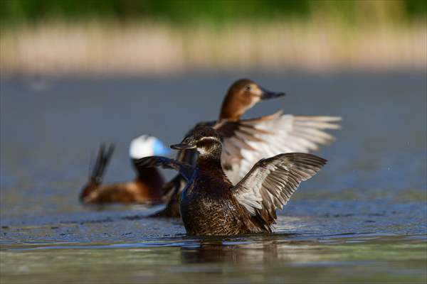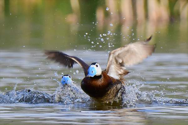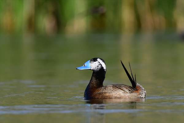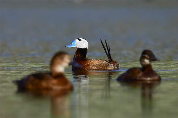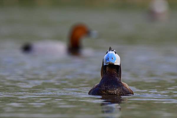 ALPARSLAN DİYARI- Ördekgiller familyasında küçük bir tür olan, Akbaş ve kalkıkkuyruk olarak da bilinen Dikkuyruk (Oxyura leucocephala), Van Gölü Havzası'nda yer alan Erçek gölü ve çevresindeki sulak alanlarda görülebiliyor.