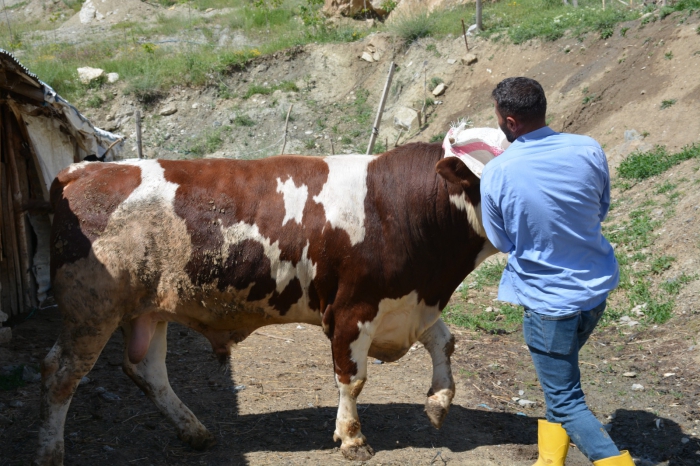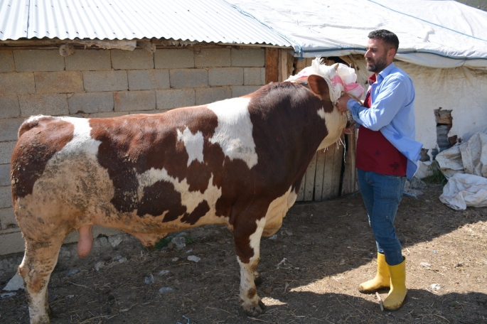 Berçelan Mahallesi'nde besicilik ve kasaplık yapan Orhan Karagöz de iki yıldır beslediği simental cinsi kurbanlık danayı satışa çıkardı.