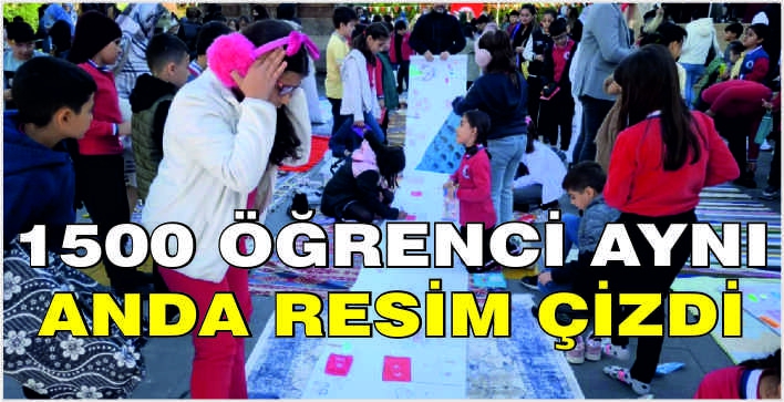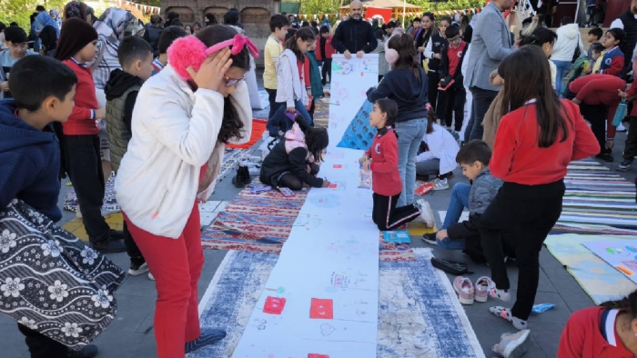 ALPARSLAN DİYARI- Mehmetçik İlkokulu tarafından çocuklara resim çizmeyi sevdirmek ve farkındalık oluşturmak amacıyla her yıl düzenlenen etkinlikte, 1500 öğrenci sınıflar halinde bir saat boyunca 10'ar metrelik kağıtlara resim yaptı.