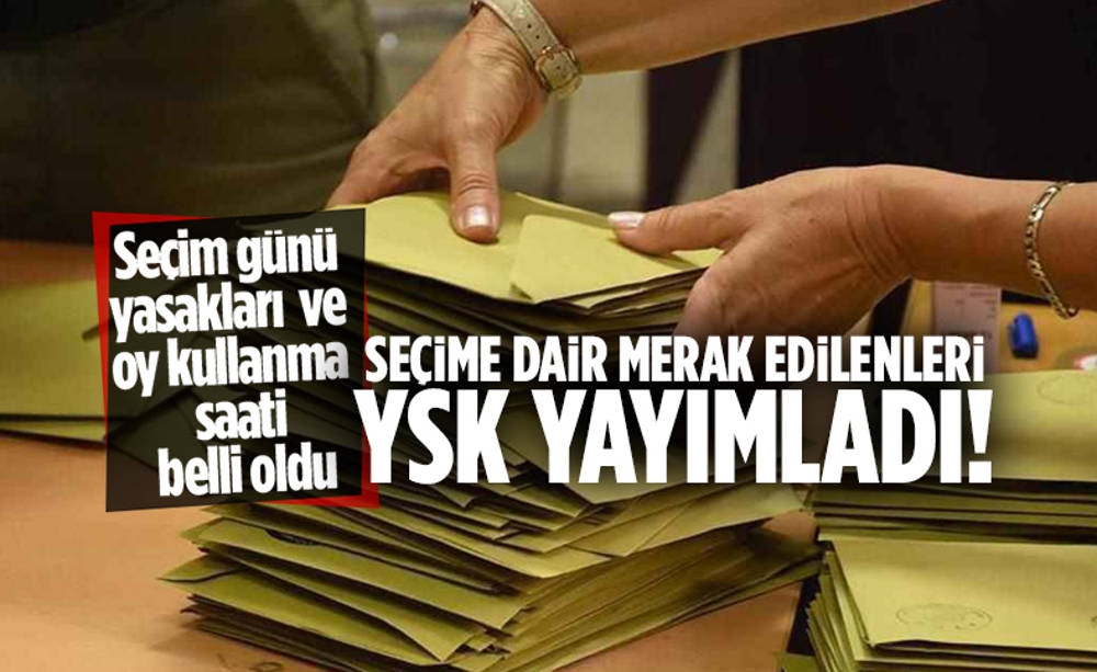 Türkiye yarın gerçekleştirilecek Cumhurbaşkanlığı ve milletvekili seçimlerine kilitlenirken, seçim yasakları da saat 18.00 itibarıyla başladı. Buna göre propaganda yasağı 24 saat boyunca geçerli olacak. Yarın sabah 06.00'dan itibaren alkol satışı yapılamayacak. Kahvehane, kıraathane ve internet kafe gibi bütün umumi eğlence yerleri kapalı olacak.