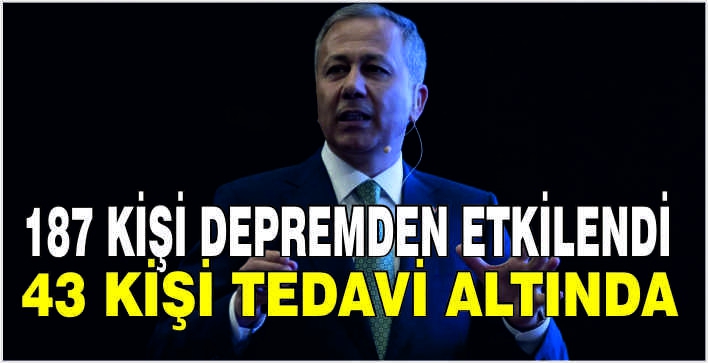 Sağlık Bakanlığından alınan bilgiye göre toplam 187 kişinin depremden etkilendiğini bildiren Yerlikaya, 43 kişinin gözetim altında tutulduğunu, diğerlerinin ayaktan tedaviyle taburcu edildiklerini söyledi.