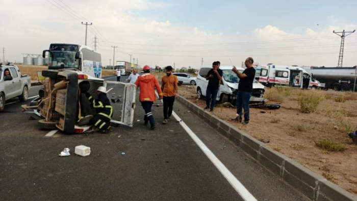 ALPARSLAN DİYARI- Kızıltepe- Viranşehir kara yolunda plakaları henüz öğrenilemeyen 2 hafif ticari araç çarpıştı.