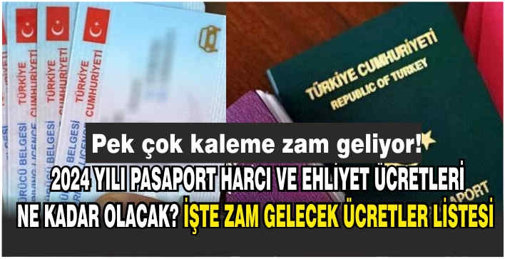 İşte 2024 yılı pasaport, ehliyet ve diğer ücretler listesi...