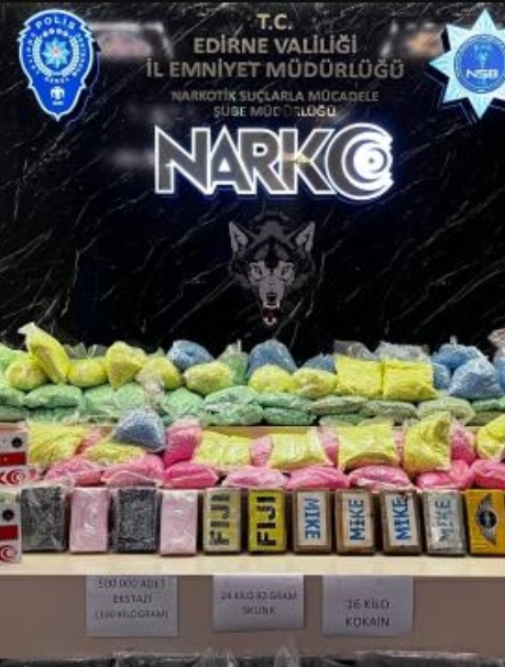 ALPARSLAN DİYARI-Emniyet Müdürlüğü Kaçakçılık ve Organize Suçlarla Mücadele (KOM) Şubesi ile Narkotik Suçlarla Mücadele Şubesi ekipleri, Edirne Gümrük Muhafaza Kaçakçılık ve İstihbarat Müdürlüğü ekipleriyle yaptıkları koordineli çalışma sonucu Kapıkule'den yurda giriş yapan U.A. isimli sürücünün kullandığı tırda arama yaptı.
