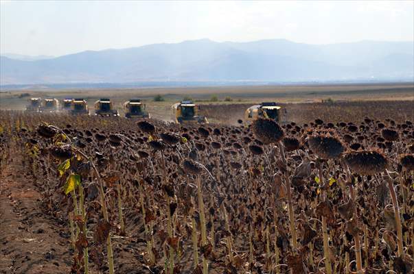 ALPARSLAN DİYARI- Yıldız Alparslan Tarım İşletmenin Ziraat Mühendisi Ahmet Gürkan Çelebi, gazetecilere, 7 bin dekar çerezlik 17 bin dekar ise yağlık olmak üzere toplam 24 bin dekar alanda ayçiçeği üretimi gerçekleştirdiklerini söyledi. Ekili alanda 9 biçerdöverle hasada başladıklarını belirten Çelebi, ayçiçeği üretiminden kent ekonomisine yaklaşık 94 milyon lira katkı sağlamayı hedeflediklerini dile getirdi.