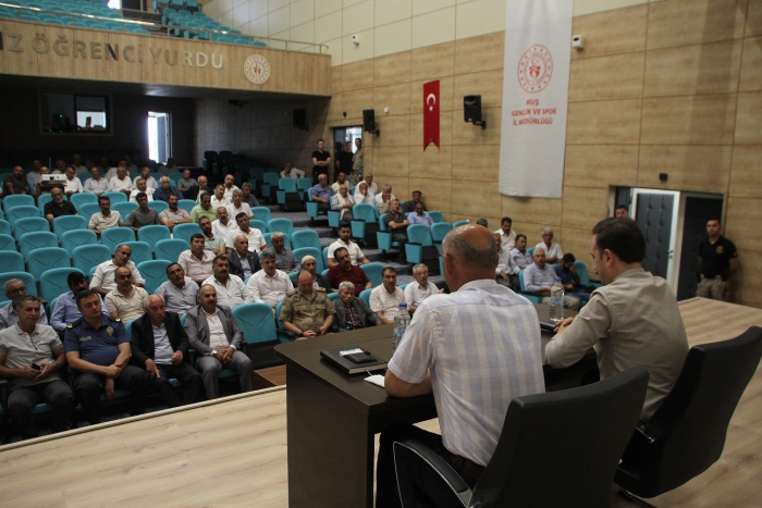 Malazgirt Gençlik ve Spor Müdürlüğüne bağlı GSM öğrenci yurdu konferans salonunda yapılan toplantıda, geçtiğimiz yıl Cumhurbaşkanı Recep Tayyip Erdoğan’ın katılımı ile kutlanan 26 Ağustos Malazgirt Fethi’nin 951’nci yılı etkinliklerinde olduğu gibi bu yıl ki etkinliklerin de Cumhurbaşkanlığı öncülüğünde Okçular Vakfı tarafından organize edeceği ifade edildi.