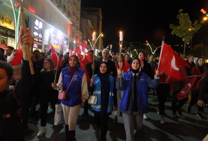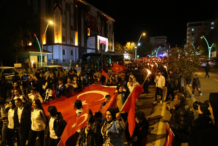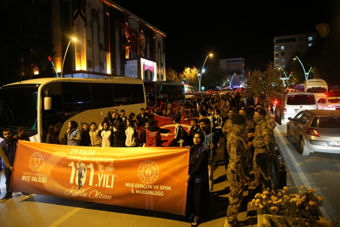 ALPARSLAN DİYARI- Muş'ta 29 Ekim Cumhuriyet Bayramı etkinlikleri kapsamında fener alayı gerçekleştirildi.