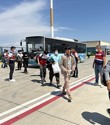 Burada Jandarma ekiplerince oluşturulan güvenlik koridorundan geçerek salona alınan düzensiz göçmenler, işlemlerinin ardından Afganistan Hava Yollarına ait 3 uçakla ülkelerine gönderildi.