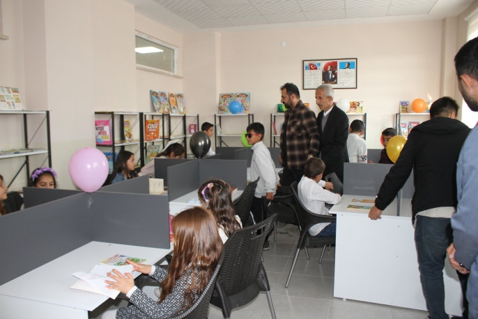 Öğretmenler Yusuf Tümay ve Hasan Kartal’ın öncülük ettiği projede raflar, kitaplar, masa ve sandalyeler, okuma alanları ve dekorasyon titizlikle hazırlanarak çocukların kullanabileceği sıcak bir okuma ortamı oluşturuldu.