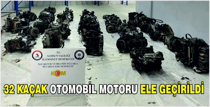 Tekkeköy ilçesi Şabanoğlu Mahallesi'nde oto yedek parçası satan bir iş yerinde yapılan arama ve Gelir İdaresi Başkanlığı görevlileri ile birlikte gerçekleştirilen evrak kontrollerinde, piyasa değeri yaklaşık 3 milyon lira olan 32 gümrük kaçağı lüks araç motoru ele geçirildi.