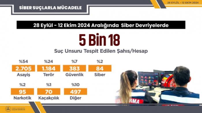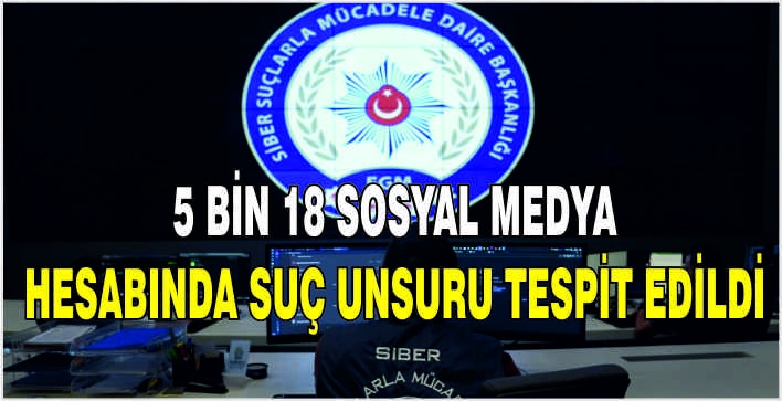 Son iki haftada siber devriyeleri 5 bin 18 sosyal medya hesabındaki paylaşımlarda suç unsuru tespit etti.