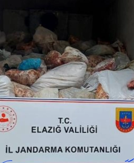Aramada kamyonun kasasında Van'dan Elazığ'a getirildiği tespit edilen, irsaliye ve faturası bulunmayan 5 ton 880 kilogram kaçak et ele geçirildi.