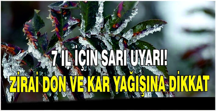 Öte yandan zirai don hadisesi beklenen Afyonkarahisar, Ankara, Bolu, Çankırı, Eskişehir, Kastamonu, Kayseri, Kırşehir, Konya, Kütahya, Nevşehir, Niğde, Sivas, Yozgat, Aksaray, Karaman ve Karabük ile yoğun kar yağışı beklenen Bitlis, Erzincan, Erzurum, Hakkari, Kars, Siirt, Van, Bayburt ve Şırnak için "sarı" kodlu uyarıda bulunuldu.