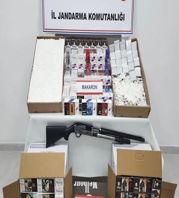 Zanlının evinde, iş yerinde ve aracında yapılan aramalarda, 73 bin 440 dolu makaron, 55 bandrolsüz puro ve ruhsatsız av tüfeği ele geçirildi. Gözaltına alınan şüpheli hakkında adli işlem başlatıldı.