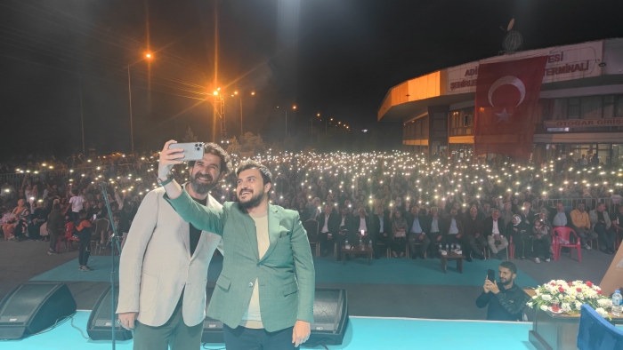 ALPARSLAN DİYARI- Belediye tarafından otogarda yapılan etkinlikte sahne alan televizyon programcısı ve yazar Serdar Tuncer, eserlerini seslendirdi.
