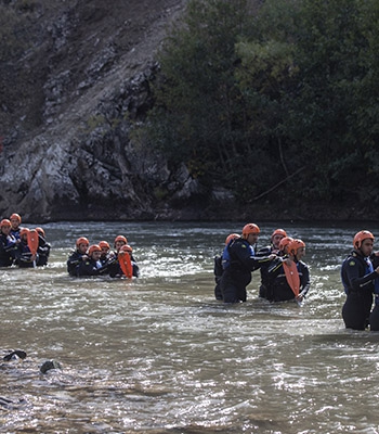 Daha sonra uygulamalı eğitimlere geçen ekiplere, Munzur Çayı'nın Mavi Köprü ile Pilvenk köyü mevkisinde ilk yardım, ekipman kullanımı, temel su güvenliği, boğulma olaylarına müdahale yöntemleri, su üstünde arama ve kurtarma teknikleri gibi konularda ders verildi.