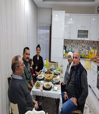 ALPARSLAN DİYARI- Kaymakam Türkmenoğlu, eşi Zehra Türkmenoğlu, Sosyal Yardımlaşma ve Dayanışma Vakfı (SYDV) Müdürü Dursun Kara ile Osmaniye'nin Zorkun Yaylası yolu Haçbel sırtı Karıncalı köyü yol ayrımında devriye görevi yapan ekip aracına teröristlerce ateş açılması sonucu şehit olan Jandarma Komando Onbaşı Mustafa Baltacı'nın ailesinin evine iftarda konuk oldu.