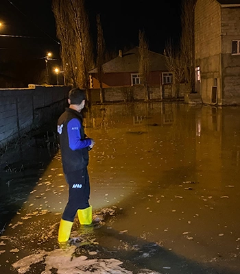 Ekipler, 15 araç, 53 personel ile ahır ve evlerdeki suya müdahale etti.