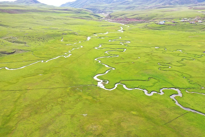 Bulunduğu ovalara can suyu veren menderesler, dronla görüntülendi.