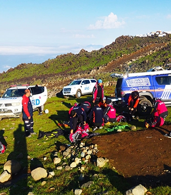 Yerli rehberlerden 2 kişi, sabah saatlerinde zirveye yakın bölgelerde arama kurtarma çalışmalarına yeniden başlarken, Van AFAD'dan sevk edilen 10 kişilik dağcı grubu ile Ağrı AFAD'dan 4 kişilik ekip, 3 bin 200 rakımdan zirveye tırmanışa geçti.