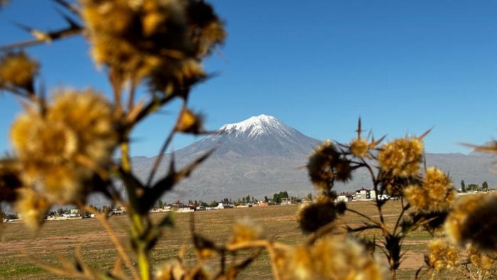 ALPARSLAN DİYARI-Türkiye'nin en yüksek noktasında bulunan 5 bin 137 metre yüksekliğe sahip Ağrı Dağı'nın zirvesi kar yağışıyla beyaza bürünürken, eteklerinde yaz havası yaşanmaya devam ediyor.