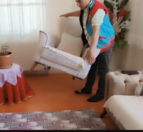 Elektrik süpürgesiyle odaları ve mutfağı süpüren, bulaşıkları yıkayan ekipler, çiçeklere de su veriyor. Programdan faydalanan yaşlılar, ekiplere teşekkür etti.