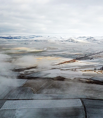 Karla kaplanan araziler ve sis altında kalan bölgeler, dronla görüntülendi.