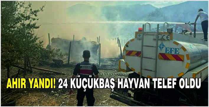 Ekiplerce söndürülen yangında ahır kullanılamaz hale gelirken 24 küçükbaş hayvan telef oldu.