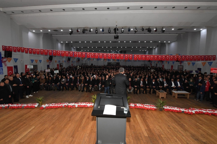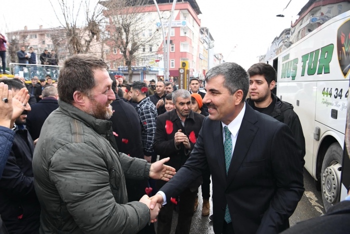 “Bugün sizlerle birlikte tekrar bu yola çıkmanın sevinci ve mutluluğunu yaşıyoruz. Bir yol çıkmıştı önümüze ve bir yolculuk yazılmıştı kaderimize. 10 yıl sizlerle birlikte bu şehirde hizmetkarlık yapmak için yola çıkmıştık. Ve yine sizlerin takipleri ile Sayın Cumhurbaşkanımızın tensipleri ile bir görev verilmişti. O görevi bir korku sevdası ile almadığımızı çok iyi biliyorsunuz. O görev hasretimiz, sevdamız ve aşkımız olan şehrimizi eksik ve aksaklıklarını yerine getirmeye sebep olmaktı. Allah’a hamdolsun ki bizim asıl amacımız musluğu açınca yüzlerdeki tebessüm olmaktı. Bir hanımefendi kardeşimizin gidebileceği meslek edinme kurslarında yer bulabilmelerini amaçladık. Bizim hasretimiz bu şehrin altyapısı, üstyapısı ve yüz binlerce metrekare yeşil alanı ile bir medeniyet şehri haline getirmekti. Bizim sevdamız belediye eliyle temiz ve ekonomik halk ekmek fabrikaları kurmak oldu. Şehirlerin olmazsa olmazı olan meydanların kurulması için mücadele ettik. Şehirlerarası otobüs terminali ile bir kültür kenti inşa etmeyi amaçladık. Gayemiz çocukların evde ders çalışma imkanı yoksa bilgi evlerine giderek sessiz bir ortam sunmaktı. Hamdolsun 10 yılın sonuna geldiğimizde bir kez daha görev yeniden devdi edildi. Cenabı Allah’a binlerce defa hamdolsun.”