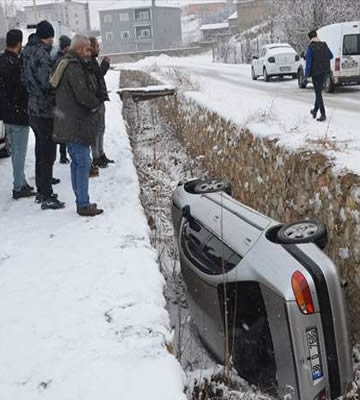 ALPARSLAN DİYARI- İlçenin Esentepe Mahallesi'nde Mahsun Kaya yönetimindeki 38 D 7686 plakalı otomobil, kontrolden çıkarak kanala düştü.