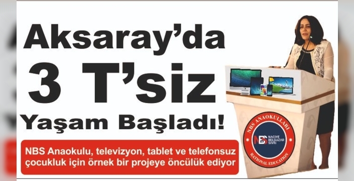 Aksaray’da NBS Anaokulları, kurucusu Belgüzar Sivri öncülüğünde dikkat çekici bir projeye imza attı: "3 T’siz Yaşam". Televizyon, tablet ve telefonun gündelik hayattan uzaklaştırılmasıyla başlayan bu farkındalık hareketi, aileler ve eğitim çevrelerinden büyük ilgi gördü.