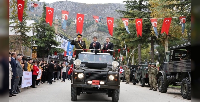 Tebriklerin ardından Yavuz Selim Meydanı’nda düzenlenen kutlama töreni yoğun katılımla gerçekleşti. Törende Vali Önder Bakan, Garnizon Komutanı Tuğgeneral Kemal Çakıroğlu ve Belediye Başkanı Av. Turgay Sevindi, askeri birliklerin, öğrencilerin ve vatandaşların bayramını kutladı. Saygı duruşu ve İstiklal Marşı’nın okunmasının ardından, Cumhurbaşkanı Recep Tayyip Erdoğan’ın Cumhuriyet Bayramı mesajı okundu. Mesajda, Cumhuriyet’in 102. yılına ulaşmanın gururu vurgulandı ülkemizin Türkiye Yüzyılı hedeflerine emin adımlarla ilerlediği ifade edildi. Günün anlam ve önemine ilişkin konuşan Vali Önder Bakan, Cumhuriyet’in ilanına giden süreci ve Amasya’nın bu süreçteki tarihi rolünü hatırlatarak, “Cumhuriyet, milletimizin tarih sahnesinde yeniden dirilişinin adıdır. 102 yıl önce milletimizin azim ve kararlılığıyla kurulan Cumhuriyetimiz, bugün tüm dünyada güçlü ve saygın bir devletin temsili haline gelmiştir.” dedi. Vali Bakan, Türkiye’nin özellikle son yıllarda savunma sanayii, teknoloji ve diplomasi alanında yaptığı atılımlarla bölgesinde etkin bir güç haline geldiğini söyledi. Gençlere de seslenen Bakan, “Cumhuriyeti biz kurduk, onu yükseltecek ve yaşatacak olan sizlersiniz.” diyerek, yeni nesillerin Cumhuriyet’e sahip çıkmasının önemini vurguladı.