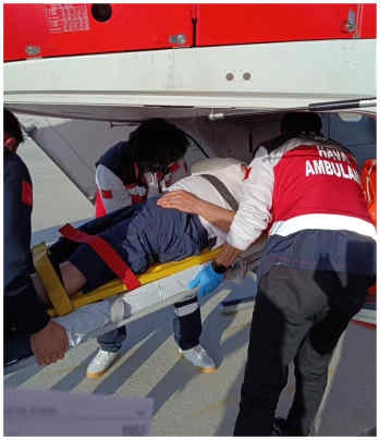 Bunun üzerine ilçeye yönlendirilen ambulans helikoptere alınan hasta, Van Eğitim Araştırma Hastanesine kaldırıldı.