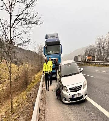 ALPARSLAN DİYARI-Onur K. idaresindeki 81 DY 172 plakalı otomobil, otoyolun İstanbul istikameti Gümüşova Rampaları mevkisinde önünde seyreden Harun A. yönetimindeki 06 CMJ 772 plakalı soda yüklü tankere çarptı.