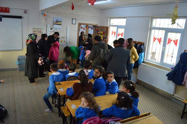 Son olarak Erzurum'un Horasan ilçesinin Azap Köyü Nafiz Şahsuvaroğlu İlkokulundaki öğrencilerle bir araya gelen hayırsever aile, çocuklara kıyafet ve kırtasiye malzemesi desteğinde bulundu.
