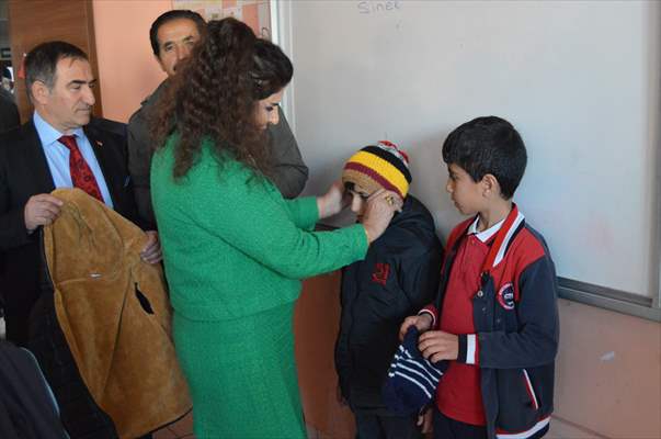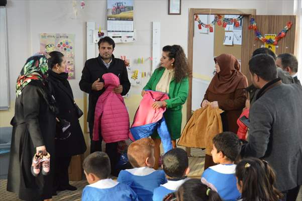Taliha Taş, 12 yıldır İstanbul'dan Erzurum'a gelerek köy okullarındaki çocuklara kışlık giysi ve kırtasiye malzemeleri desteği sağladığını söyledi.