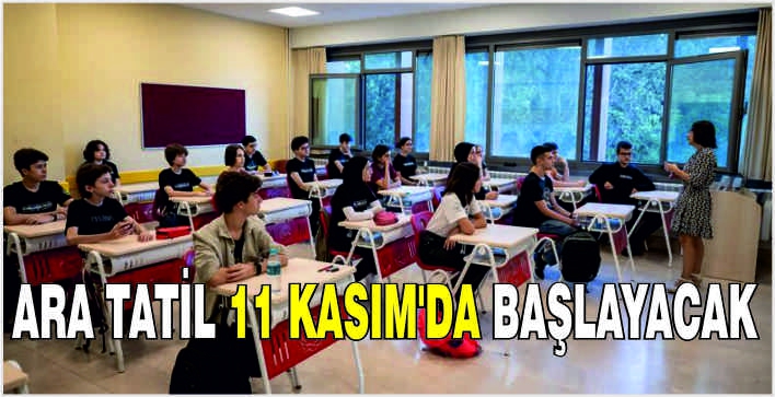 2024-2025 eğitim öğretim yılının ilk ara tatilsonrasında öğrenciler 18 Kasım Pazartesi günü ders başı yapacak. Yarı yıl tatiliise 20 Ocak 2025 Pazartesi günü başlayarak 31 Ocak 2025 Cuma günü sona erecek.